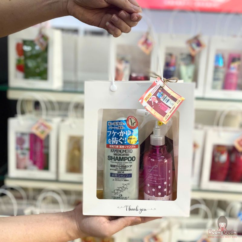 Set quà Dầu Gội Kaminomoto + Xịt Tạo Kiểu Giữ Nếp Tóc Lucido-L