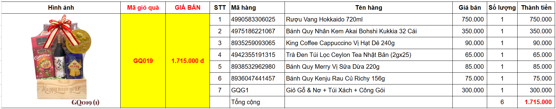 Bảng giá chi tiết giỏ quà tết GQ019(1)