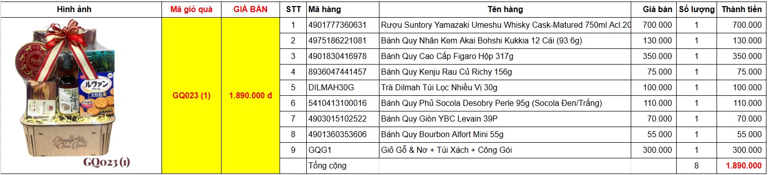 Bảng giá chi tiết giỏ quà tết GQ023(1)