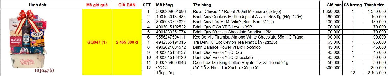 Bảng giá chi tiết giỏ quà tết GQ047(1)