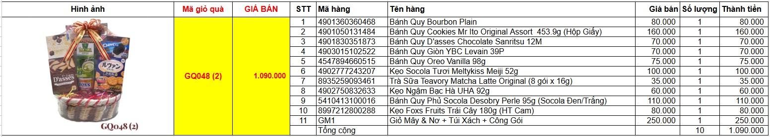 Bảng giá chi tiết giỏ quà tết GQ048(2)