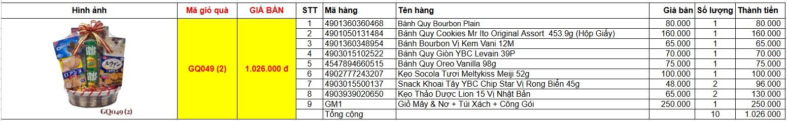 Bảng giá chi tiết giỏ quà tết GQ049(2)