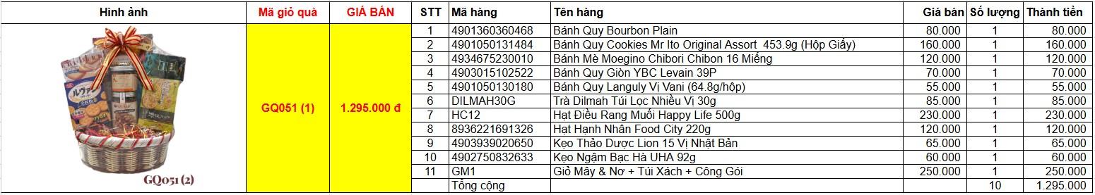 Bảng giá chi tiết giỏ quà tết GQ051(2)