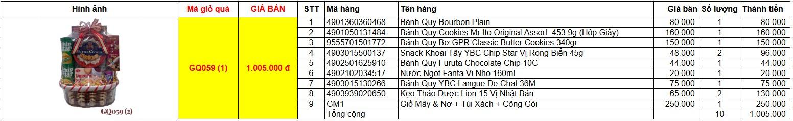 Bảng giá chi tiết giỏ quà tết GQ059(2)